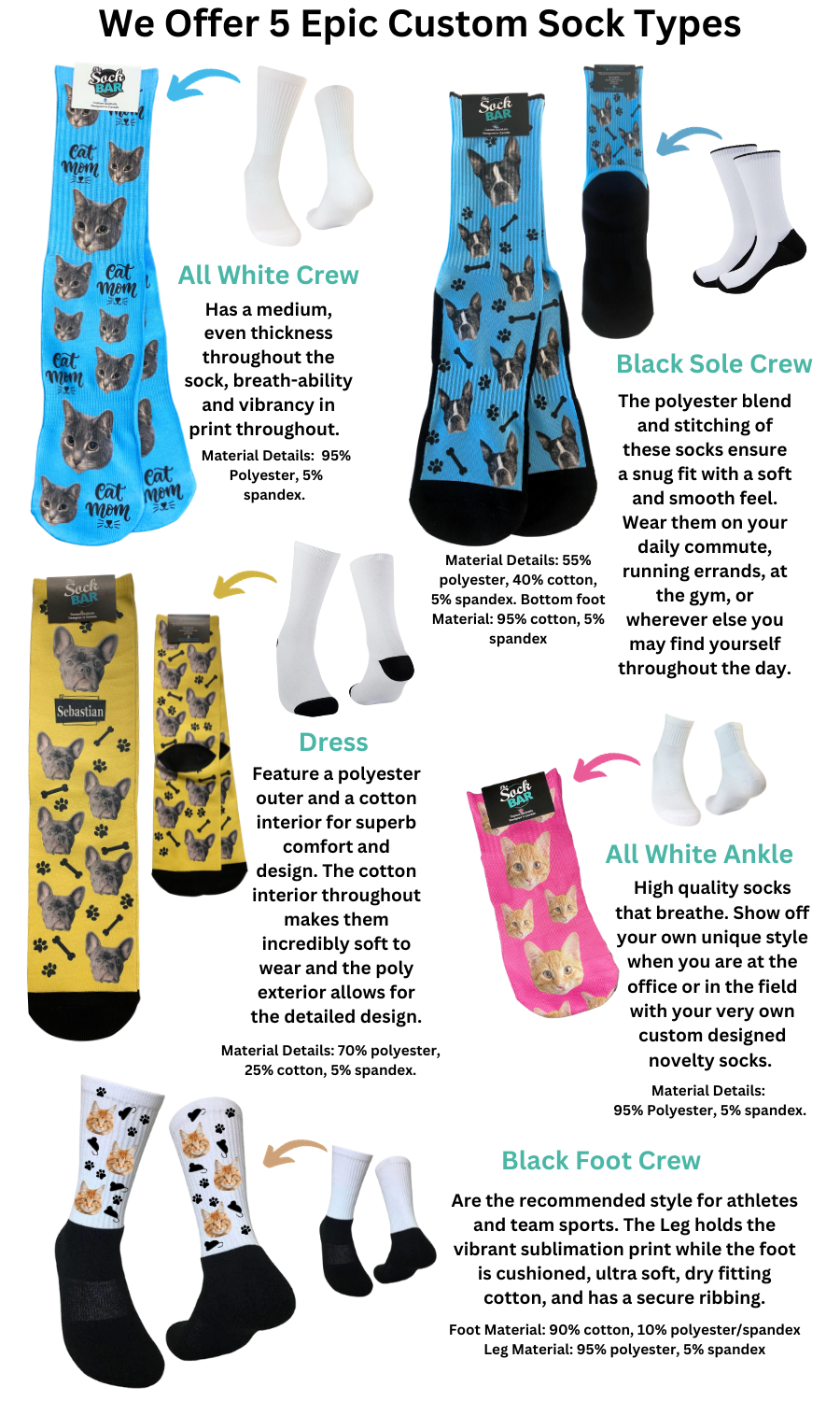 Custom Dress Socks - 70% polyester, 25% cotton, 5% elastane/spandex