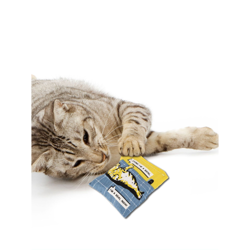 What is the meaning of catnip? Is catnip a luxury? Or should it be a right? Promotes healthy play and exercise. 100% cotton pouch, screen printed and stuffed with premium organic catnip grown in the USA.